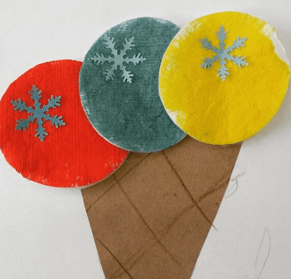 Сверху расположим три шарика мороженого из ватных дисков. Наша поделка готова.